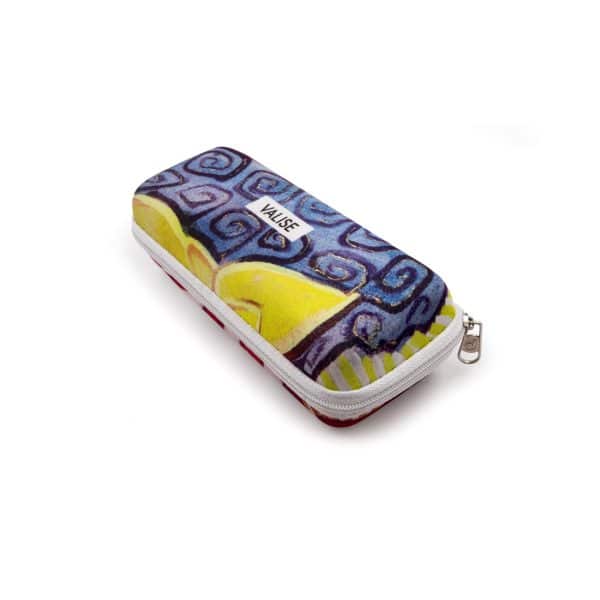 Brillenetui in een rechte vom met rits.