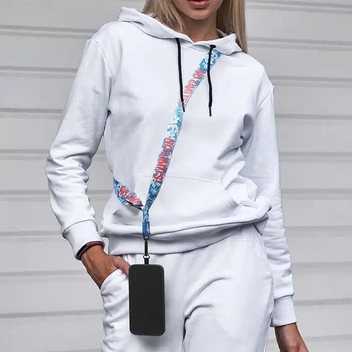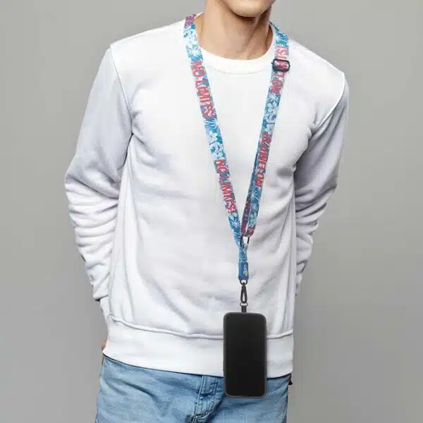 Creëer de trend met onze gesublimeerde verstelbare crossbody telefoonhouder, compleet met jouw eigen ontwerp PVC logo patch.