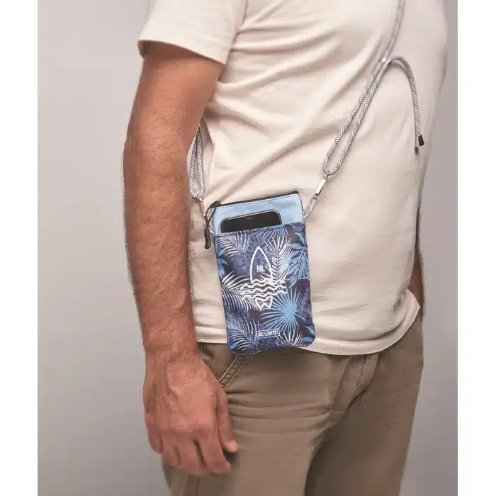Ontdek het gemak van handsfree! Deze tas kan crossbody worden gedragen of om de nek worden gehangen, met de mogelijkheid om de lengte van het meerkleurige koord aan te passen. Het beschikt over een compact ritsvakje waarin je dagelijkse essentials zoals sleutels en pasjes passen, terwijl het voorvakje gemakkelijke toegang biedt tot je telefoon.