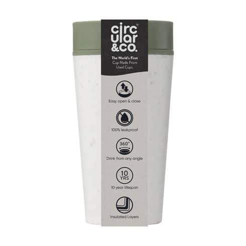 Duurzame koffie to-go beker: dubbelwandig, circulair en herbruikbaar, ontworpen door Circular&Co. Deze innovatieve beker heeft een buitenste isolatielaag gemaakt van gerecyclede single-use papieren koffiebekers, waardoor je bijdraagt aan een duurzamere wereld. De binnenwand en het deksel zijn vervaardigd van PP-materiaal.
