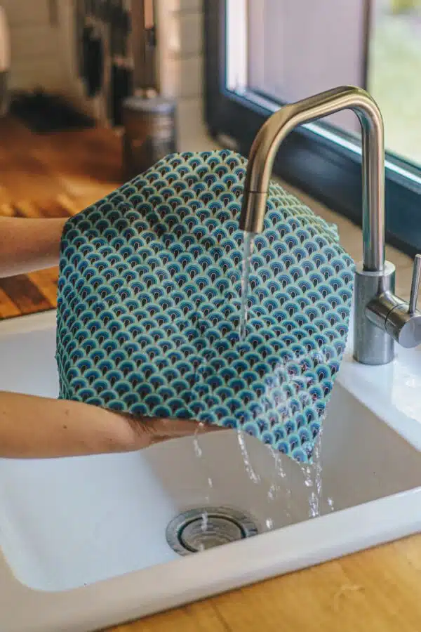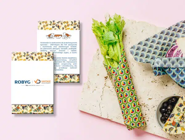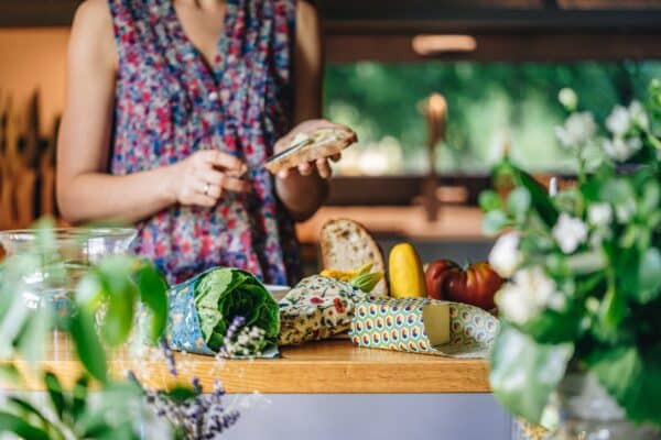 bijenwasdoeken en bijenwasdoekjes gemaakt van gecertificeerd GOTS katoen voorzien van speciale inkt zodat veilig is om voedsel in te bewaren of mee te nemen.