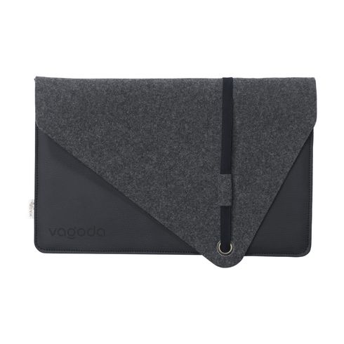 Deze laptop sleeve combineert vegan appel-leer met gerecycled wolvilt (50% gerecycled materiaal, 30% wol, 20% PE). Het vegan leer, gemaakt van appelpulp, heeft de uitstraling en feel van echt leer, terwijl het wolvilt duurzaam is en gecertificeerd door de Global Recycled Standard. De hoes heeft een GOTS-gecertificeerde sluitelastiek van katoen en biologisch afbreekbaar rubber. Met een extra vak voor oplader en documenten.